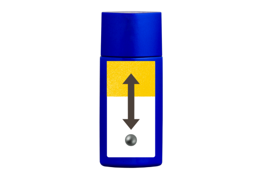 トップアスリート サンプロテクト “ファイター” は2層に分かれているので、中の攪拌球の音がカラカラ鳴ってから10秒(約35回)を目安によく振って中身を混ぜてからご使用ください。 長時間静置するとダマやツブのようなものが出ることがありますが、成分由来であり使用上問題はありません。そのまま塗り伸ばすか、気になる場合は指で取り除いてください。